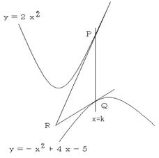 問題2:下図で、y=2x2・・・@ y=−x2+4x−5・・・Aと直線x=kの交点を