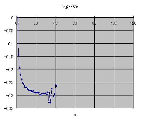 とりあえずは,logpn/nは0.3(≒log2−1)近くの値に近づくことが分かる.
