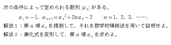 解法には帰納的な考え方と演繹的な考え方があります。次の問題をこの2種類の方法から解いてください。(注:演繹的な解法を見つけていません。)