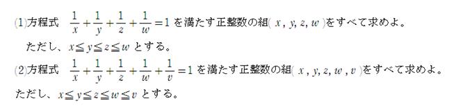 1/x + 1/y + 1/z + 1/w = 1C0 < 1 <= x <= y <= z