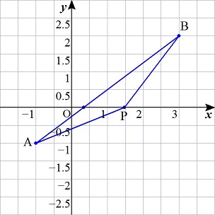 ここで,(x,y) 座標平面上で,A(3,2),B(-1,-1),P(x,0) とおくと,
