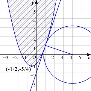 (-1/2,-5/4) の下に凸の放物線又はその内側