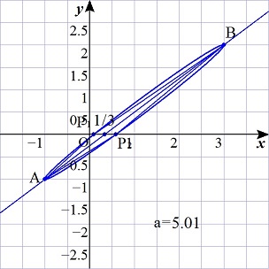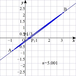 AB の式は y = 3x/4 - 1/4 なので,このとき P(1/3,0),x = 1/3 です。