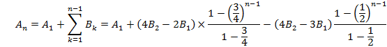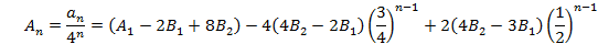 an+1D/4^(n+1)-(3/4)anD/4^n-1/4=(1/8)E(1/2)^(n-1)