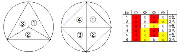第六領域・・・(k-1)^4-(k-1)^3+(k-1)^2-(k-1)^1+(k-1)^0-1 ・・・・・・・・第五領域のi以外の色のとる場合の数に一致