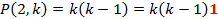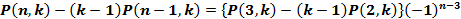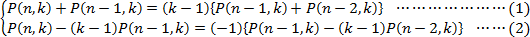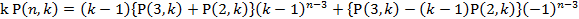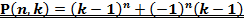 (k-1) * P(n-1,k) = (-1)^n * k(k-1)