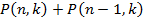 直接に,P(n-1,k),P(n,k) の漸化式を求めることもできると思いますが,