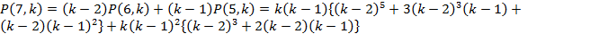 P(4,k)=(k-1)4+(k-1)・(-1)4=(k-1)4+(k-1)=k(k-1)(k2-3k+3)