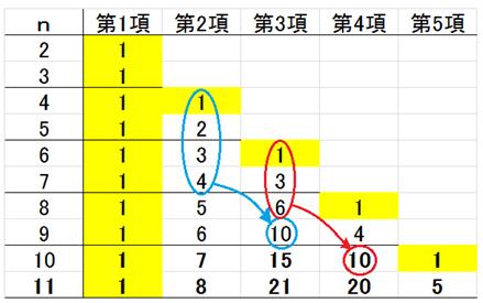P(3、3)、P(4、3)、P(5、3)、・・・、P(10、3)、