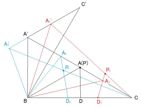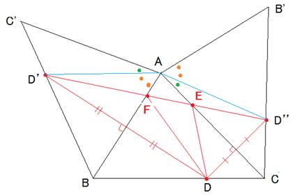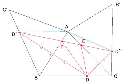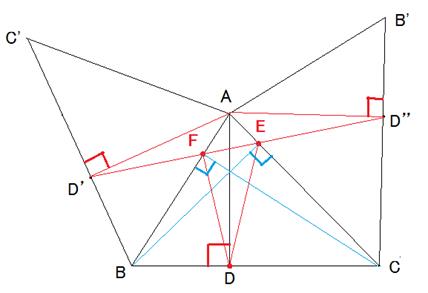 そこで,AD⊥BC となるように D を取り,AB,AC の対称点 D',D'' を取り,