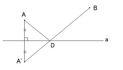 ●まず、点AとBとを直線aを経由させて結ぶと、最短は図のような場合になります。