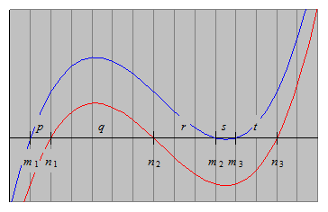 の範囲でx軸と異なる3点で交わることを考慮して図示すると下図のような関係になり,