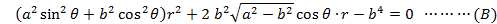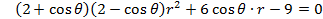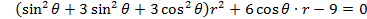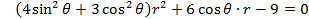 ((sinθ)^2 + 3)r^2 + 6(cosθ)r - 9 = 0