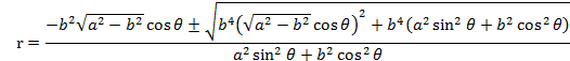 r = (b^2/a)/(1 + (f/a)cosθ) = l/(1 + ecosθ)