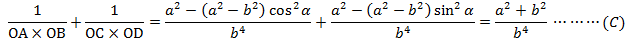 1/(OA * OB) + 1/(OC * OD) = (a^2 + b^2)/b^4