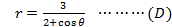 OBの偏角は(φ+π)だから,OB=3/(2+cos(φ+π))=3/(2-cosφ).