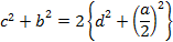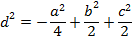 = 2(d^2 + (a/2)^2),d^2 = (2b^2 + 2c^2 - a^2)/4