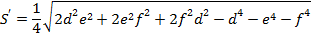 3辺の長さが、d、e、fの三角形の面積S’は、