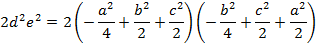 + 2a^2 - b^2)/4 + (2a^2 + 2b^2 - c^2)/4)((2b^2 + 2c^2 - a^2)/4)