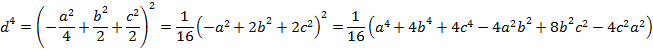2a^2 - b^2)/4 - (2a^2 + 2b^2 - c^2)/4)^2