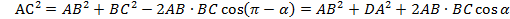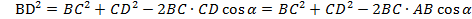 + AD^2 - 2 * AB * AD * cos(∠BAD)