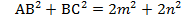 (AB)^2+(AD)^2=2*(AE)^2+2*(BE)^2.---(2)