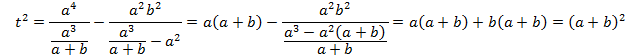 つまり,s=√(a^3/(a+b)),t=√(b^3/(a+b)))のときである.
