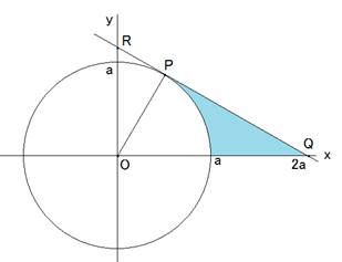 いま、半径aの円を考えその上の動点P(Pは第一象限)における接線と,x軸,y軸との交点をそれぞれQ,Rとする。このとき、線分QRの長さの最小値と、そのときの点Pの座標を求めよ。という問題を考えます