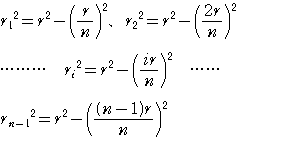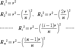 円柱の半径を下から順にR1,R2,R3,・・Rnとすると、三平方の定理より