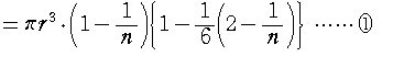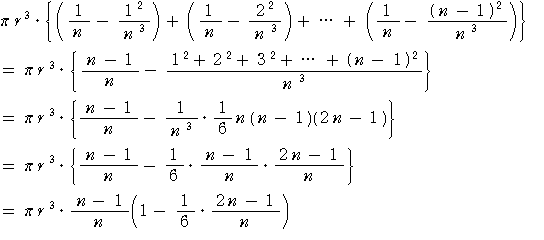 各円柱の高さはr÷nであるから、円柱の体積を下から順に計算していくと、