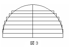 nがどんな値のときでも図1の立体は半球に含まれ、図3の立体は半球を含むことから、半球の体積は@より大きくAより小さい。つまり、@<半球の体積<A ところで、nを限りなく大きくしたら、@、Aの値はどのようになるでしょう。
