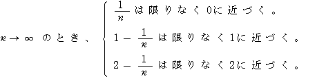 と分母をどんどん大きくすると、分数の値はどんどん0に近づくことから、