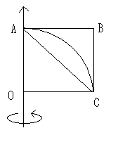 一辺の長さrの正方形OABCの頂点Oを中心にして、半径rの円弧ACをかく。次に頂点AとCを結ぶ。この図形をOAを軸に回転すると、内側から円錐、半球、円柱ができる。