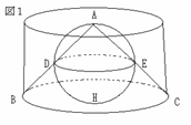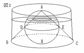 アルキメデスは図1のように、円柱とその中の大円錐ABCを想定し、円柱の上下面に接する球とその中の小円錐ADEを考える。