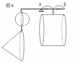 このような釣り合いは任意の断面において成り立つから、円柱や球、円錐がそれぞれ無数の断面円によって構成されると考えると、図4のように釣り合うことになる。
