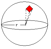 次に、半径rの球を図のように底面がこの球の表面にあり、頂点が球の中心である小さな角錐体に細分して、体積の値V=(4÷3)πr3から表面積Sを求めてみる。