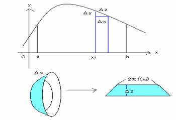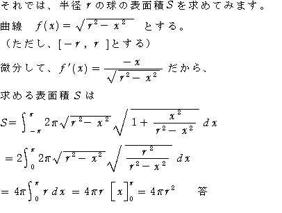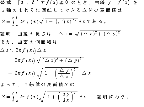 次に、回転体の表面積を求める公式を利用して求めてみる。