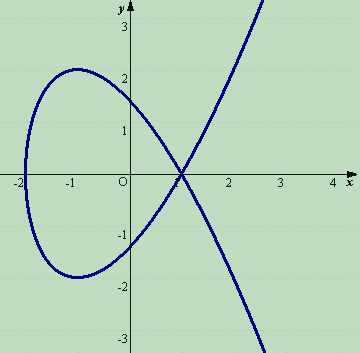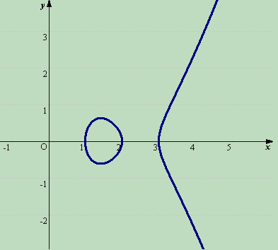 y2=(x−1)2(x+2)=0とおいた方程式が、重解を持つ場合、特異点(結節点)を持つので、楕円曲線ではない。 |