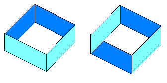 【テーマ3:「不可能物体」】4枚の板をつなげて下記の左図のように見える囲いを作ることができますが、右図のようにつなぐことはできません。その理由をなるべく数学的に説明してください。