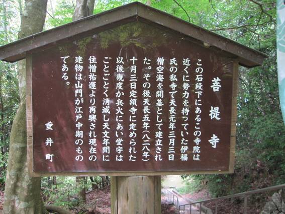 菩提寺真言宗の寺院で天長元年(824年)僧空海が、豪族伊福氏の要請によりこの地を訪れ、菩提寺を開基したといわれている。また、天長5年(828年)10月に定額寺(官寺)となる。