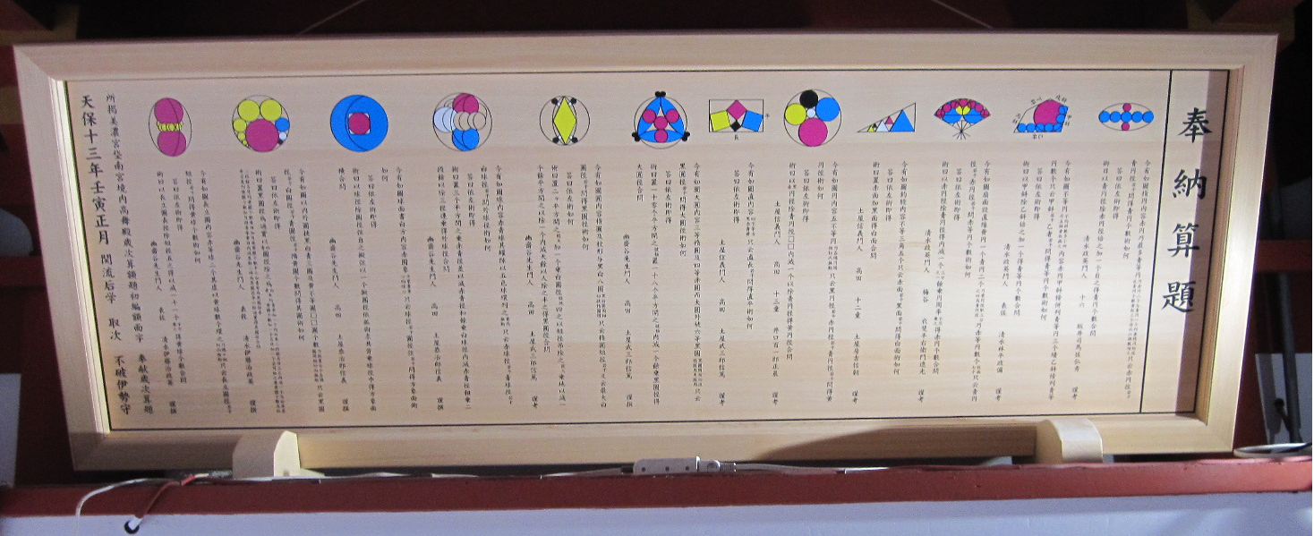 NO18:2020年7月23日(木) 江戸時代末期、大垣で和算塾を開いていた谷幽斎先生の門弟が、前年に亡くなられた師を偲んで、天保13年(1842年)南宮大社に算額(絵馬)を奉納しました。