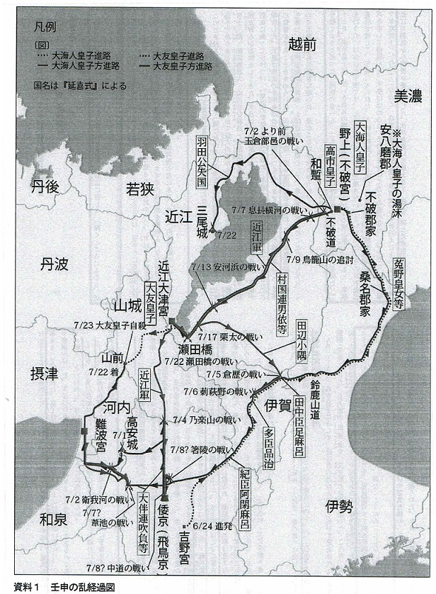 壬申の乱の経路は歴史講座の資料から