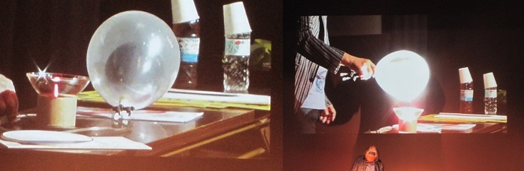 また、大きな風船の中に小さな風船が入った2重風船がある。どちらの風船も中に空気を入れてふくらだ状態です。さて、大きな風船を割らずに、中に入っている小さな風船を割るにはどうしたらいいでしょうか。